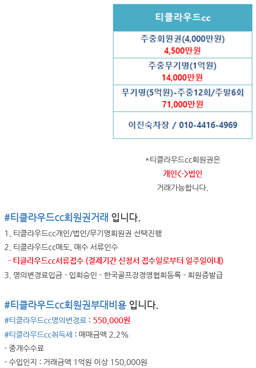 | ★티클라우드cc회원권,티클라우드cc회원권시세,티클라우드cc법인회원권,티클라우드cc무기명회원권,티클라우드cc법인무기명회원권안내입니다. (0) | 2020.12.18 |