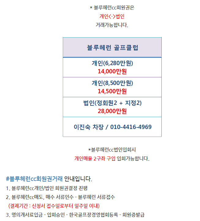 ★2인회원혜택,블루헤런CC개인,법인회원권시세안내입니다.