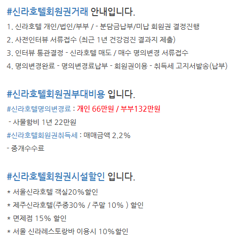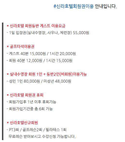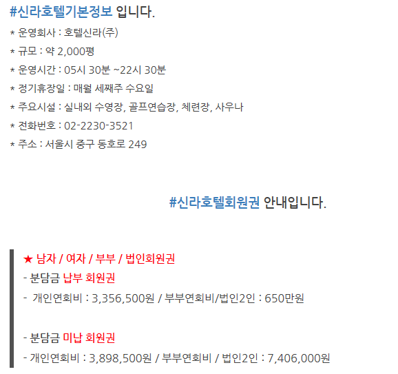 | 서울신라호텔휘트니스회원권 남자여자부부피트니스회원권 매물가격 매매시세와 이용혜택 안내 (0) | 2019.08.20 |
