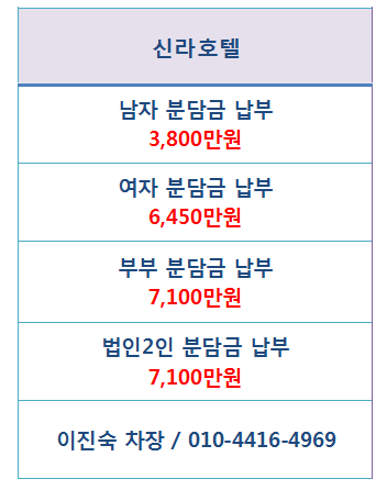 | 서울신라호텔휘트니스회원권 남자여자부부피트니스회원권 매물가격 매매시세와 이용혜택 안내 (0) | 2019.08.20 |