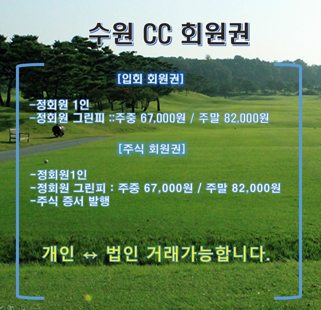 수원CC 회원권은 입회/주식 회원권으로 분류되며