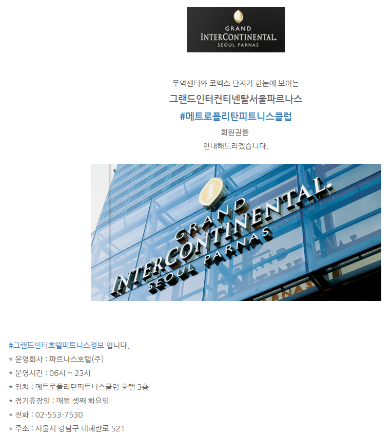 *그랜드인터컨티넨탈서울파르나스,그랜드인터호텔회원권,메트로폴리탄피트니스개인,법인,부부회원권시세입니다.