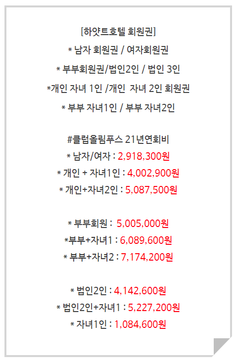 | 그랜드하얏트호텔회원권 하얏트호텔남자,여자부부자녀 법인회원권연회비 안내입니다. (0) | 2021.07.29 |