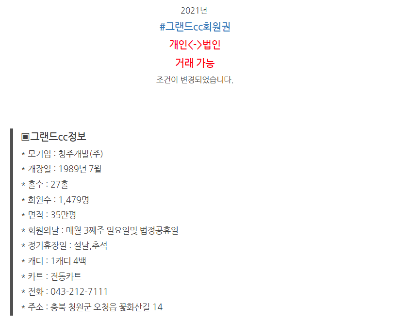 | 우정힐스cc회원권 우정힐스cc개인,법인회원권시세!! (0) | 2021.12.02 |