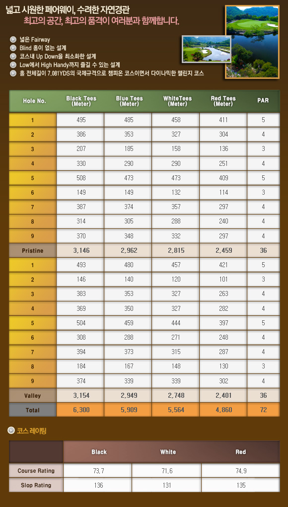 -PRISTINN코스 VALLEY코스로 구분되어있습니다.