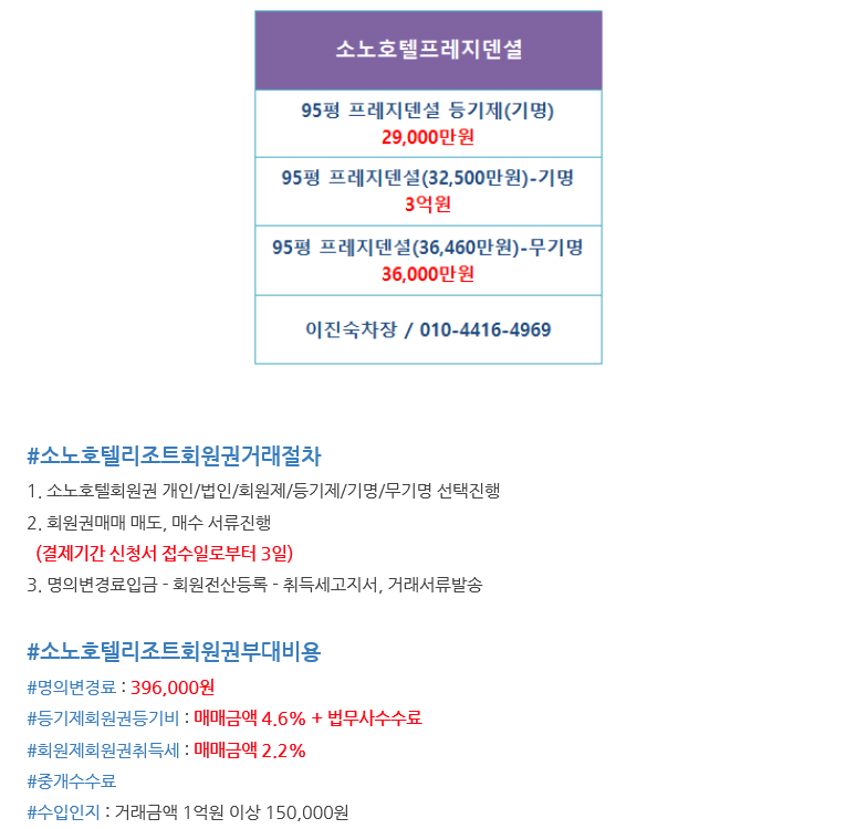 #대명노블리안95평,소노호텔프레지덴셜95평기명,무기명회원권안내입니다.