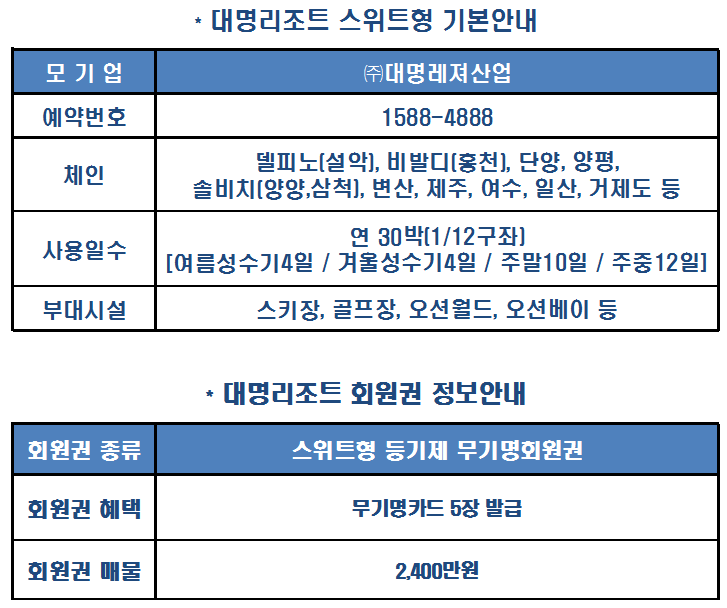 #대명리조트스위트회원권 안내입니다.