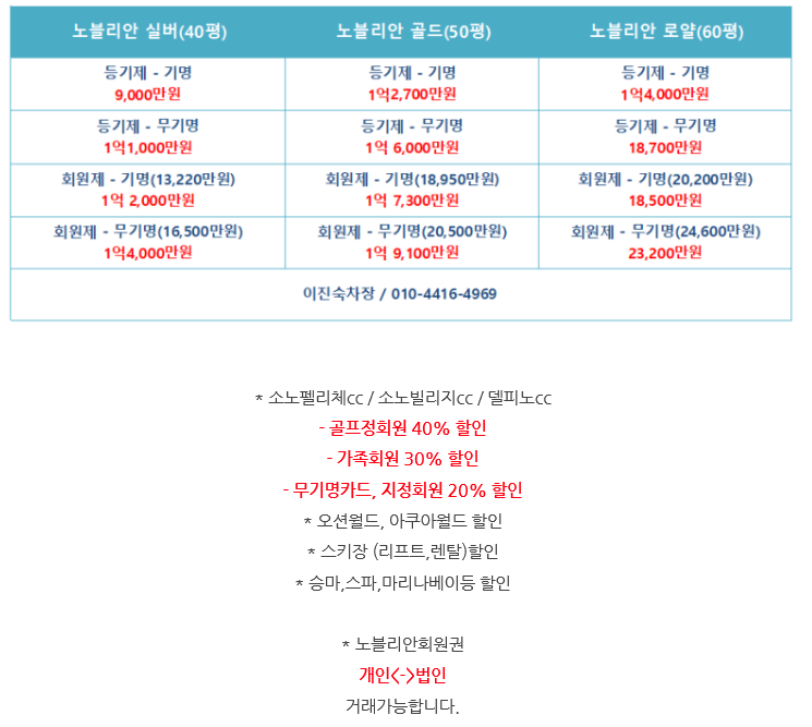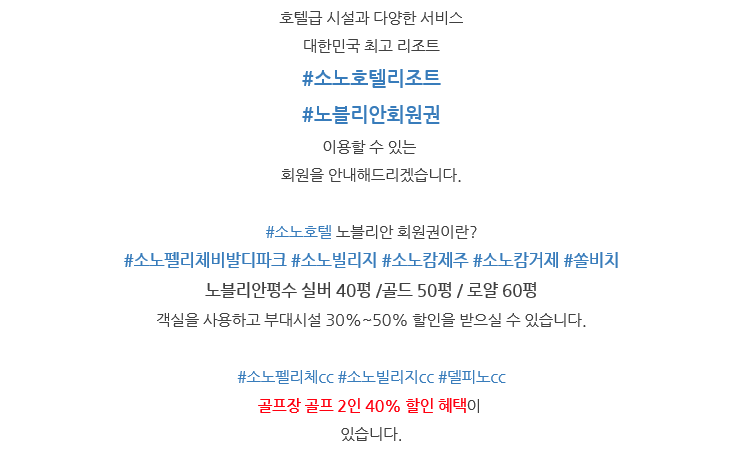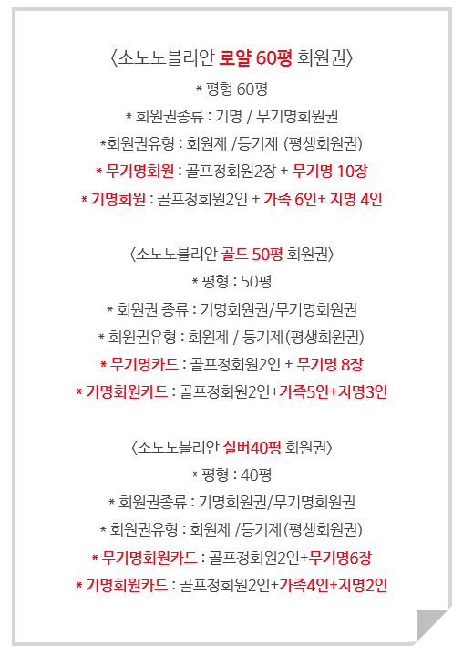 | #소노펠리체프레지덴셜95평회원권,소노빌리지95평회원권,쏠비치법인무기명회원권,소노펠리체법인무기명회원권안내입니다. (0) | 2021.04.06 |