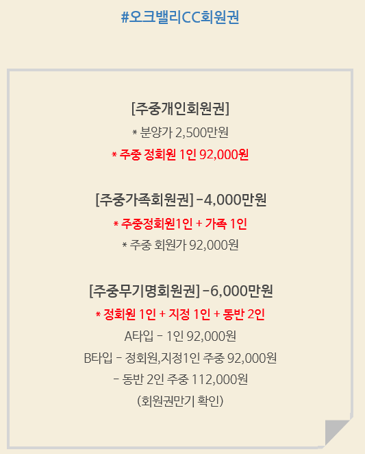 | #오크밸리CC회원권,오크밸리CC골프회원권,오크밸리CC주중회원권,오크밸리법인회원권,오크밸리CC무기명회원권안내입니다. (0) | 2021.03.25 |