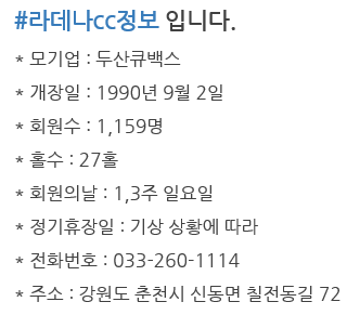 | *라데나cc회원권시세,라데나컨트리클럽골프회원권혜택,회원권거래안내입니다. (0) | 2020.08.24 |
