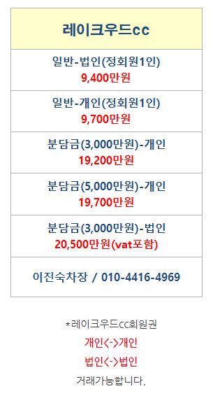 | 프리스틴밸리cc회원권시세 예약,거래방법안내!! (0) | 2022.03.21 |