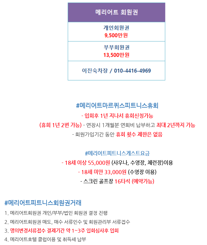 헬스회원권/강남권 *메리어트호텔피트니스회원권,메리어트호텔회원권,jw메리어트회원권시세,마르퀴스피트니스회원권안내입니다. by 알 수 없는 사용자 2021. 1. 29. 공유하기 게시글 관리 예스회원권 '헬스회원권 > 강남권' 카테고리의 다른 글 코엑스호텔피트니스회원권, 코스모폴리탄피트니스회원권,인터컨티넨탈코엑스호텔회원권,코엑스호텔회원권연회비안내입니다. (0) 2021.04.16 #메리어트호텔회원권,메리어트부부회원권,메리어트개인회원권,JW메리어트호텔회원권,메리어트마르퀴스회원권,메리어트연회비안내입니다. (0) 2021.04.07 *노보텔강남호텔회원권,노보텔호텔피트니스회원권,노보텔앰배서더강남호텔피트니스개인,법인무기명,부부회원권안내입니다. (0) 2021.01.26 *jw메리어트호텔회원권시세,메리어트회원권시세,메리어트개인회원권,메리어트부부회원권,메리어트마르퀴스호텔회원권,메리어트회원권시세회원권매매안내입니다. (0) 2020.12.11 *메리어트호텔회원권,jw메리어트호텔회원권시세,메리어트개인,부부,법인회원권시세회원권매매안내입니다. (0) 2020.11.17 관련글 코엑스호텔피트니스회원권, 코스모폴리탄피트니스회원권,인터컨티넨탈코엑스호텔회원권,코엑스호텔회원권연회비안내입니다. #메리어트호텔회원권,메리어트부부회원권,메리어트개인회원권,JW메리어트호텔회원권,메리어트마르퀴스회원권,메리어트연회비안내입니다. *노보텔강남호텔회원권,노보텔호텔피트니스회원권,노보텔앰배서더강남호텔피트니스개인,법인무기명,부부회원권안내입니다. *jw메리어트호텔회원권시세,메리어트회원권시세,메리어트개인회원권,메리어트부부회원권,메리어트마르퀴스호텔회원권,메리어트회원권시세회원권매매안내입니다.