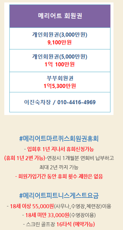 | *메리어트호텔피트니스회원권,메리어트호텔회원권,jw메리어트회원권시세,마르퀴스피트니스회원권안내입니다. (0) | 2021.01.29 |