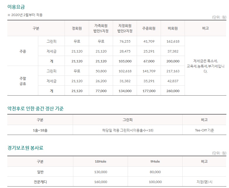 -렉스필드cc 이용요금