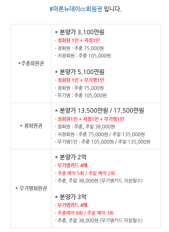 | 천연 알프스에 위치한 마론뉴데이CC / 마론뉴데이컨트리클럽 회원권 정보 알아보시고 가세요! (0) | 2020.08.07 |