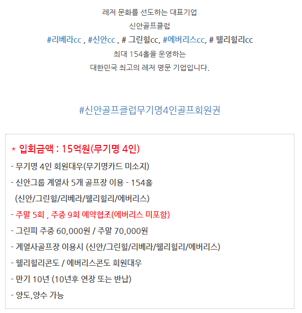 | *오크힐스cc주중무기명회원권/오크힐스컨트리클럽회원권신규입회안내입니다. (0) | 2020.05.12 |