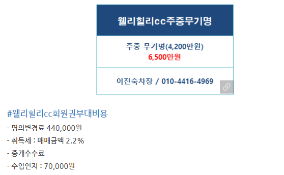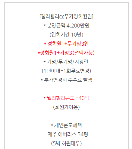 무기명회원권 법인4인무기명회원권 웰리힐리회원권안내입니다.