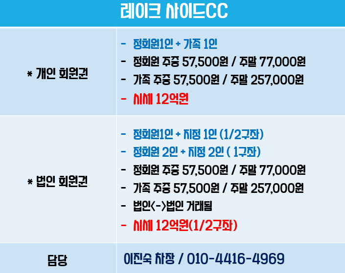 | 캐슬렉스서울cc회원권 개인,가족분담금회원권 비교혜택안내입니다. (0) | 2021.08.05 |