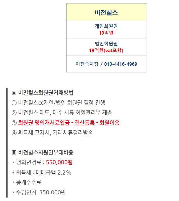 부킹잘되는골프장 비전힐스cc회원권시세,거래방법안내