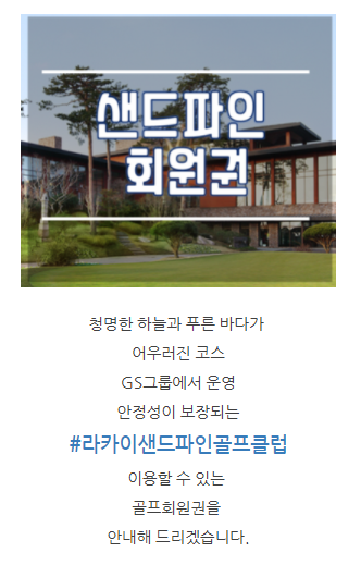 | 샌드파인cc회원권,개인,법인예약방법!! (0) | 2022.01.18 |