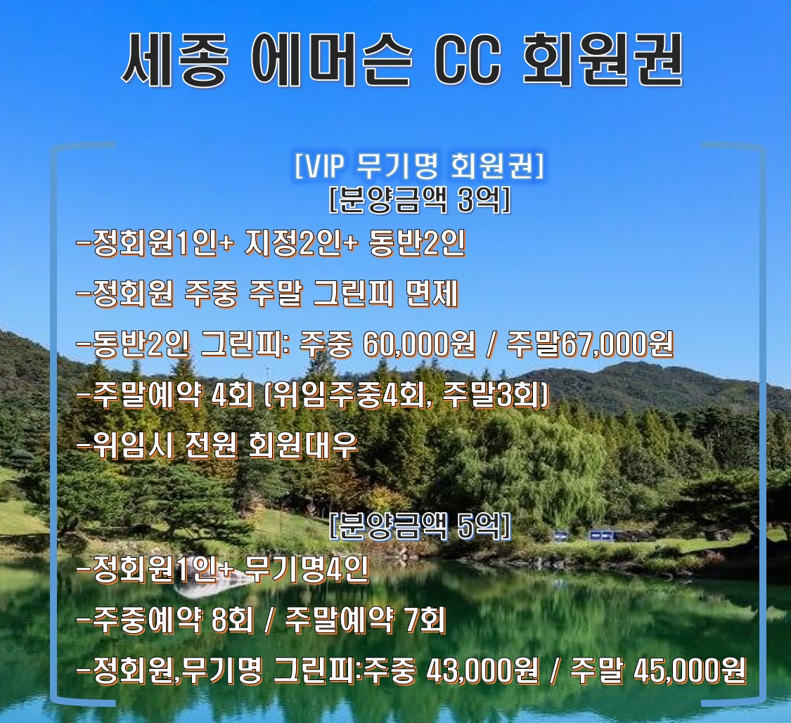 충청권 명문골프장 세종에머슨CC 회원권 지금 부터 알아보겠습니다.