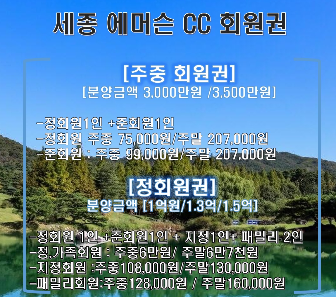 세종시내 유일한 회원제 클럽 세종에머슨CC/ 세종에머슨컨트리클럽 회원권 정보 알아보시고 가세요!!