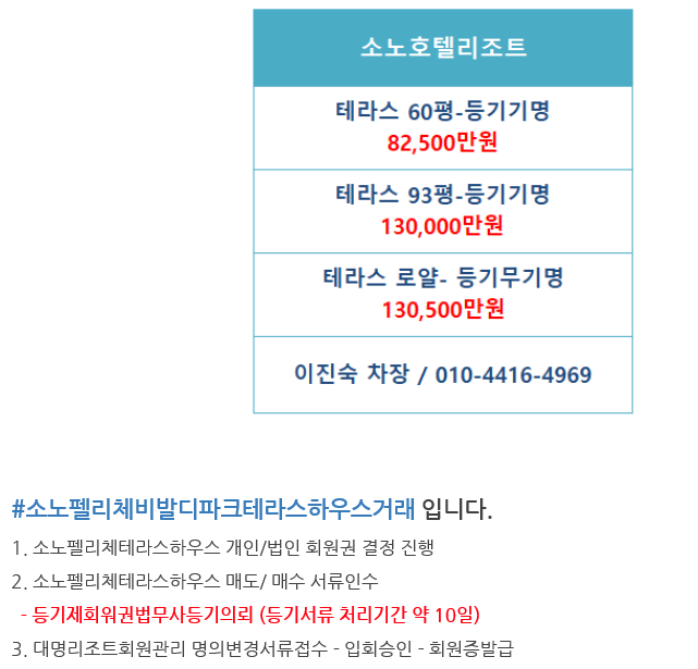 *소노펠리체테라스하우스회원권,소노펠리체레지던스50평,60평,70평전용객실회원권,소노펠리체무기명회원권시세안내입니다.