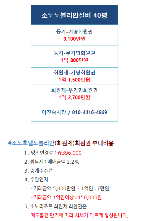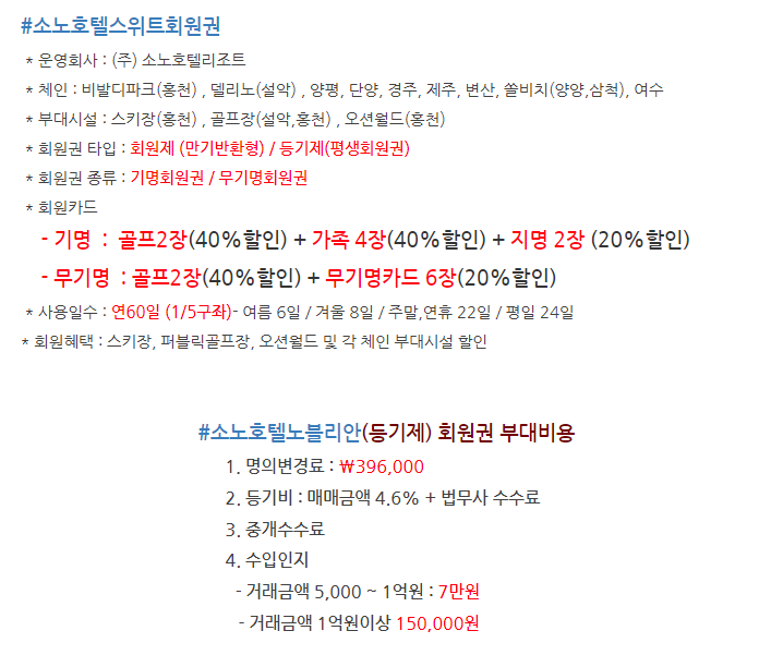 소노펠리체40평,쏠비치양양,쏠비치삼척 회원권시세!!