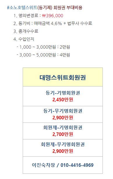 | 투룸형 소노호텔스위트회원권 소노홍천법인무기명회원권 쏠비치양양,삼척,진도,법인무기명시세안내입니다. (0) | 2021.06.03 |