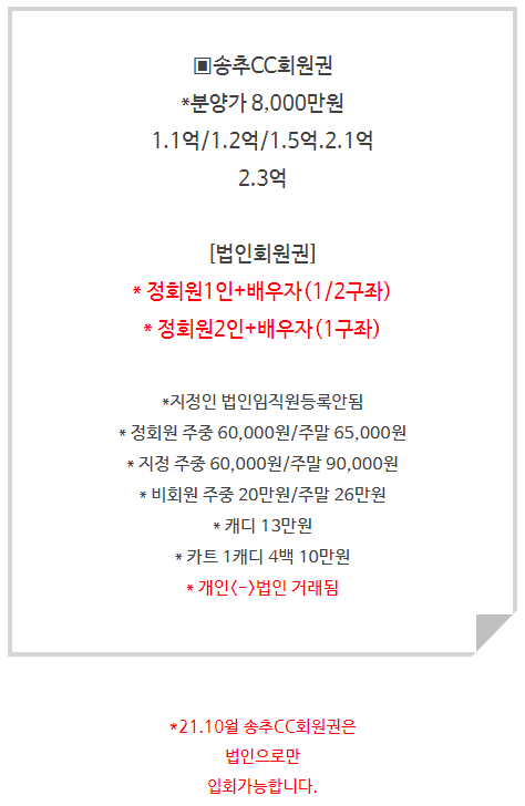 | 프리스틴밸리cc회원권 개인주중,법인,가족회원권안내입니다. (0) | 2021.11.03 |