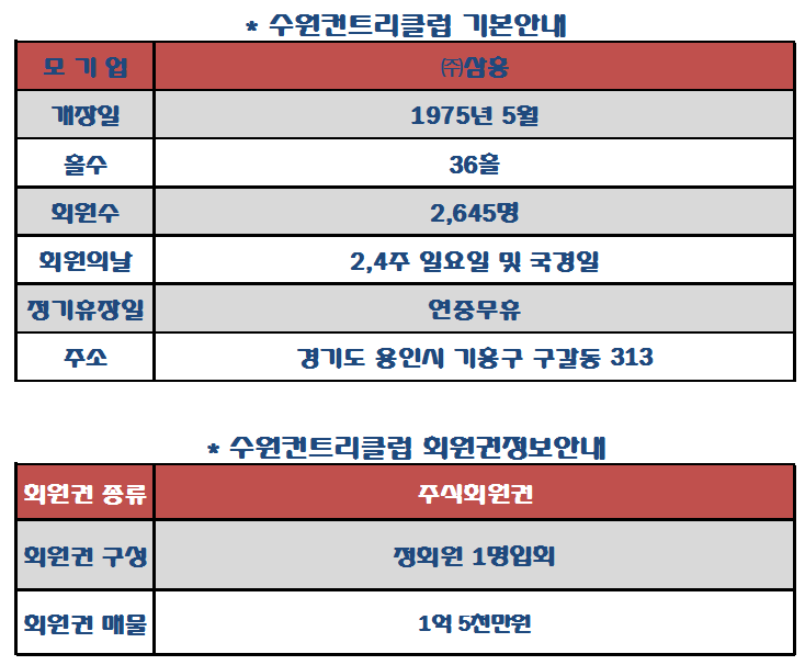 [수원cc,수원컨트리클럽] 매매시세 안내입니다.