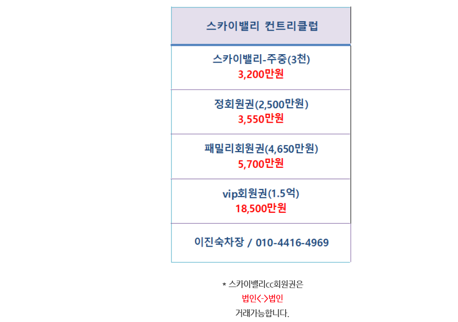 *스카이밸리cc개인,법인,주중골프회원권시세/스카이밸리컨트리클럽회원권혜택안내입니다.