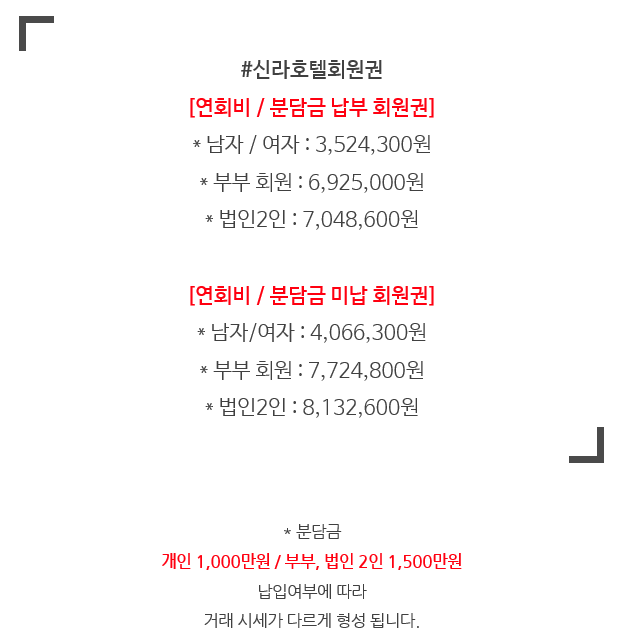 | *신라호텔회원권,신라호텔개인회원권,신라호텔남자회원권,신라호텔여자회원권,신라호텔법인회원권안내입니다. (0) | 2021.03.08 |