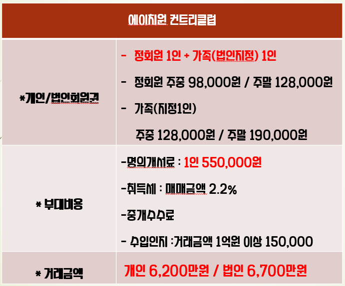 에이치원cc회원권 개인,법인회원권혜택비교 안내입니다.
