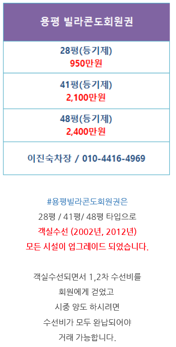 | #용평콘도회원권,용평콘도17평회원권,용평콘도34평회원권,용평콘도전용객실회원권안내입니다. (0) | 2021.03.31 |