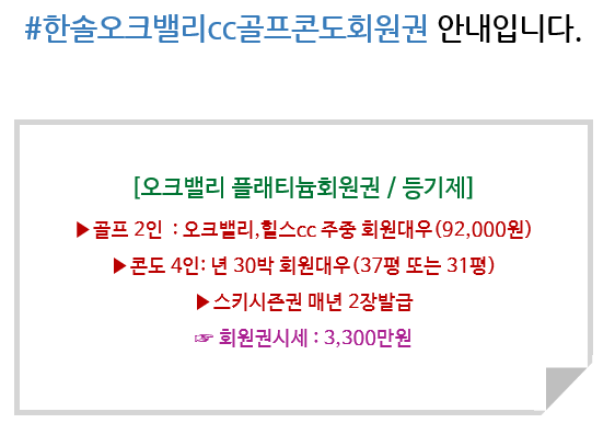 | *용평cc회원권,용평골프회원권시세,용평cc법인회원권,용평cc회원권시세,용평컨트리클럽회원권혜택안내입니다. (0) | 2020.12.08 |