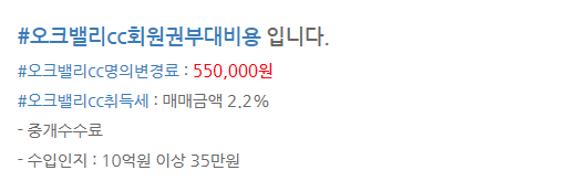 *오크밸리cc4인무기명회원권/오크밸리컨트리클럽무기명골프회원권시세,회원권혜택안내입니다.