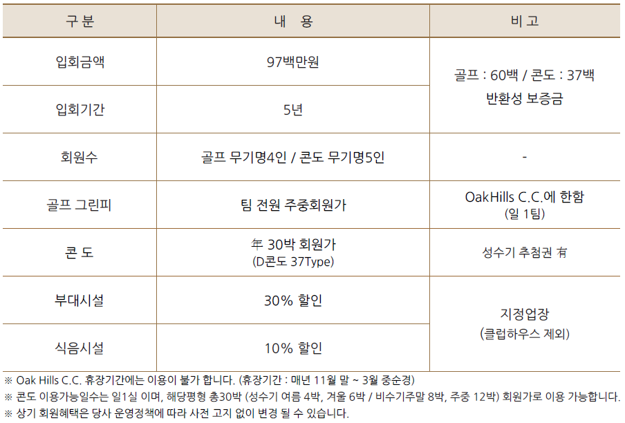 | 4인회원혜택 오크밸리cc골프회원권,오크힐스cc골프회원권회원권혜택안내입니다. (0) | 2020.04.29 |