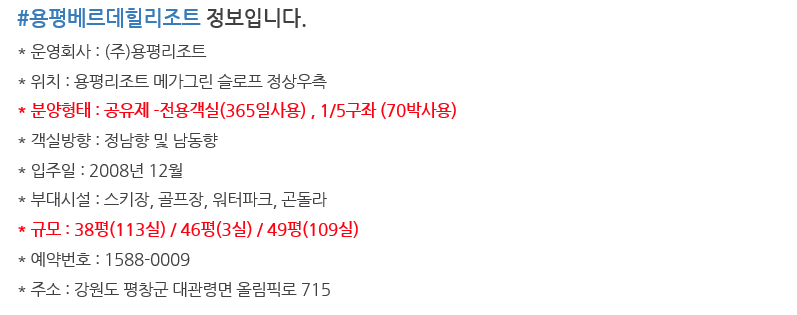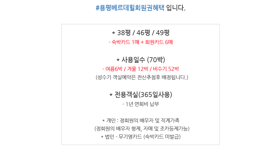 | *용평콘도17평,34평전용객실회원권,용평리조트365일전용객실회원권시세,회원권혜택안내입니다. (0) | 2020.08.04 |