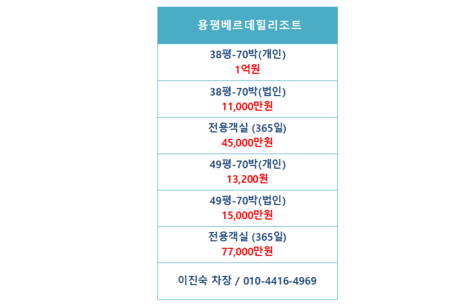 | *용평빌라콘도회원권,용평빌라콘도28평,41평,48평개인,법인회원권시세안내입니다. (0) | 2020.08.18 |