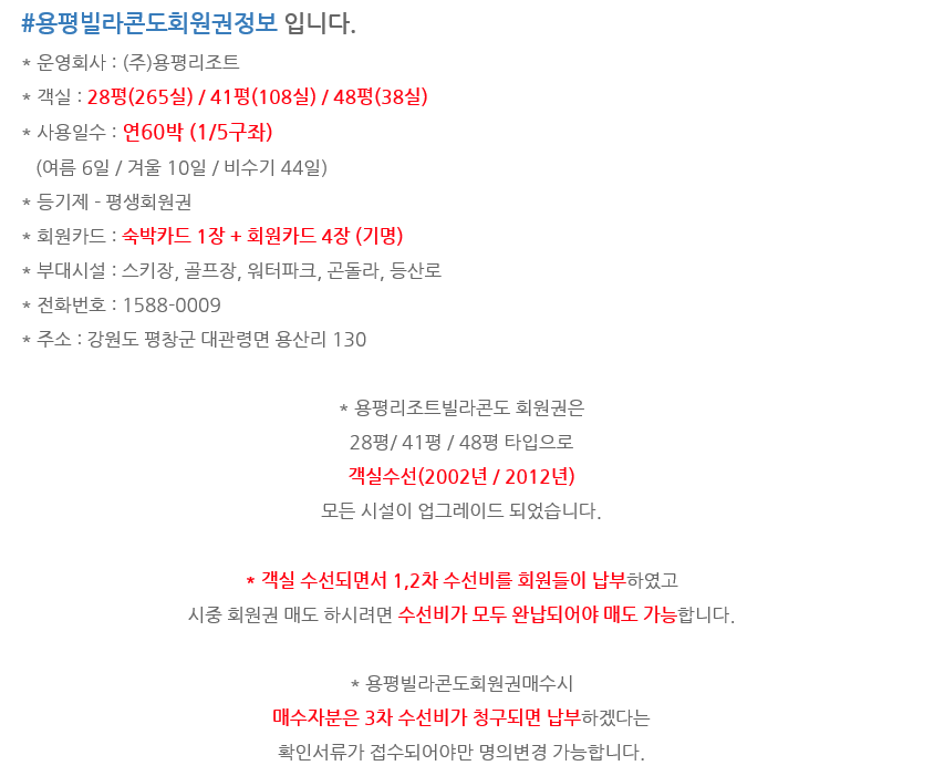 | *용평콘도17평,34평전용객실회원권,용평리조트365일전용객실회원권시세,회원권혜택안내입니다. (0) | 2020.08.04 |