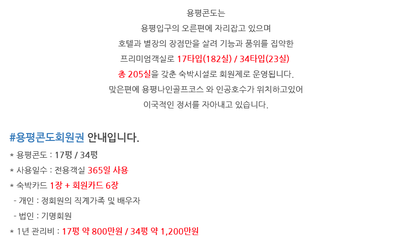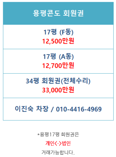 | *용평빌라콘도회원권,용평빌라콘도28평,41평,48평개인,법인회원권시세안내입니다. (0) | 2020.08.18 |