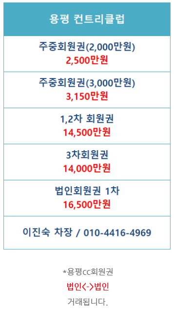 골프회원권/강원권 *용평cc회원권,용평골프회원권시세,용평cc법인회원권,용평cc회원권시세,용평컨트리클럽회원권혜택안내입니다. by yesgolfyeoin 2020. 12. 8. 공유하기 게시글 관리 예스회원권 '골프회원권 > 강원권' 카테고리의 다른 글 *버치힐cc골프회원권,용평버치힐cc회원권,용평버치힐골프회원권,용평버치힐cc회원권시세,용평버치힐cc무기명회원권,용평버치힐골프회원권시세안내입니다. (0) 2020.12.11 *용평cc회원권,용평cc골프회원권,용평cc법인회원권,용평cc주중회원권, 용평골프클럽회원권시세안내입니다. (0) 2020.12.11 *용평버치힐cc골프회원권,용평버치힐골프회원권시세,용평버치힐cc회원권시세,용평버치힐골프회원권시세,용평버치힐cc법인회원권시세,용평버치힐cc회원권혜택입니다. (0) 2020.12.08 *오크밸리cc주중회원권, 오크힐스cc주중골프회원권,오크밸리골프콘도회원권시세,오크밸리주중회원권매매안내입니다. (0) 2020.11.17 *설악플라자CC회원권,설악플라자CC골프회원권시세,회원권혜택안내입니다. (0) 2020.11.10 관련글 *버치힐cc골프회원권,용평버치힐cc회원권,용평버치힐골프회원권,용평버치힐cc회원권시세,용평버치힐cc무기명회원권,용평버치힐골프회원권시세안내입니다. *용평cc회원권,용평cc골프회원권,용평cc법인회원권,용평cc주중회원권, 용평골프클럽회원권시세안내입니다. *용평버치힐cc골프회원권,용평버치힐골프회원권시세,용평버치힐cc회원권시세,용평버치힐골프회원권시세,용평버치힐cc법인회원권시세,용평버치힐cc회원권혜택입니다. *오크밸리cc주중회원권, 오크힐스cc주중골프회원권,오크밸리골프콘도회원권시세,오크밸리주중회원권매매안내입니다.