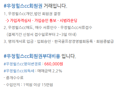 | [우정힐스cc골프회원권,우정힐스컨트리클럽] 매매시세 안내입니다. (0) | 2018.10.22 |