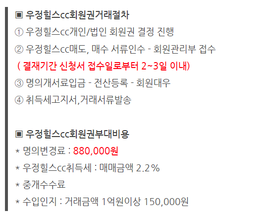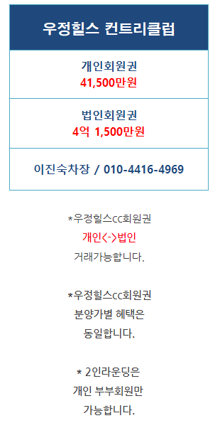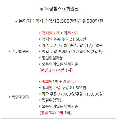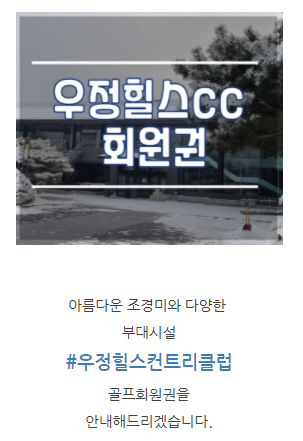| 우정힐스cc회원권 예약,회원권매매방법안내!! (0) | 2022.02.03 |