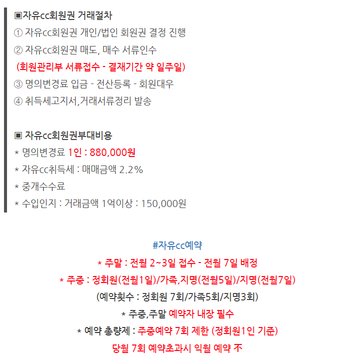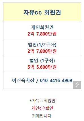 자유cc회원권,개인,법인회원혜택,매매방법안내!!