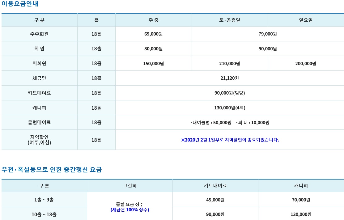여주 CC 이용요금 정보입니다.