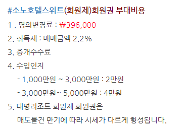 | 소노호텔스위트 32평 개인,법인무기명시세,회원권구입방법안내!! (0) | 2022.04.14 |
