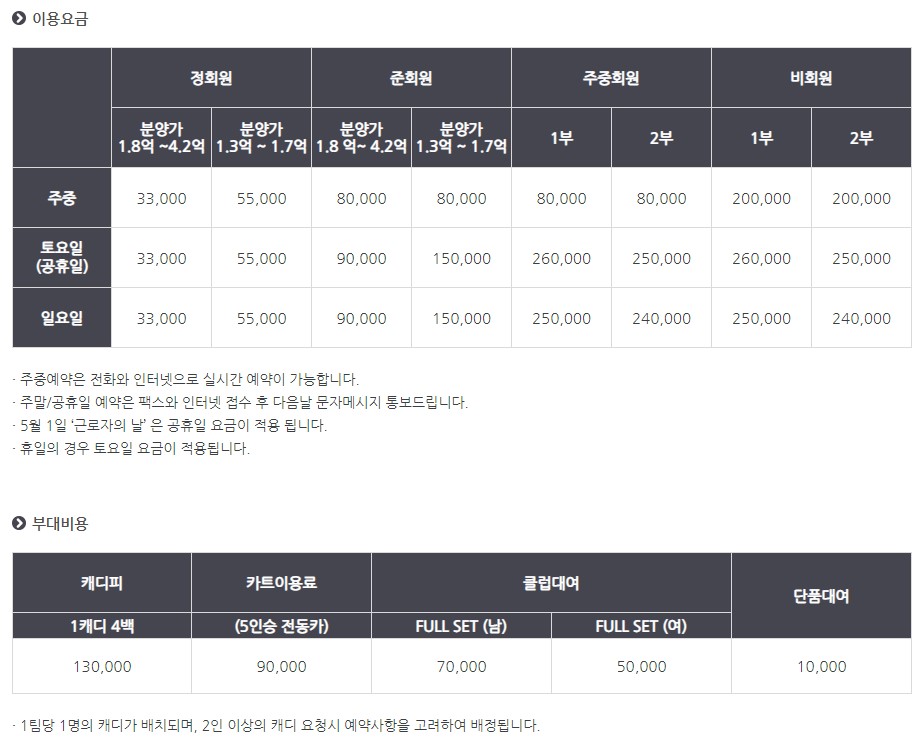 -서원밸리cc 요금 및 기타요금