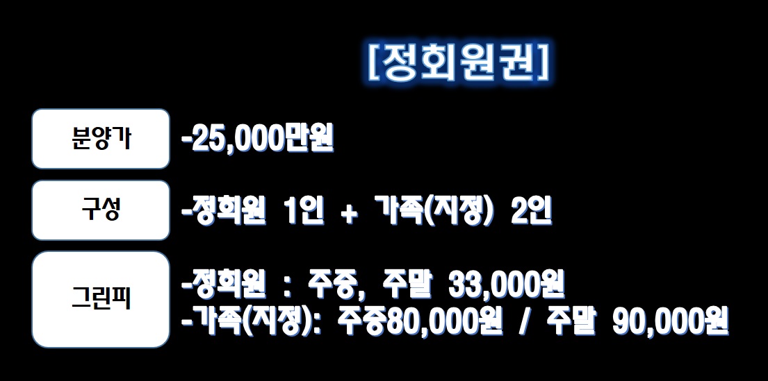 지금부터 회원권 정보 및 다양한 정보들 자세하게 보고 가시겠습니다!